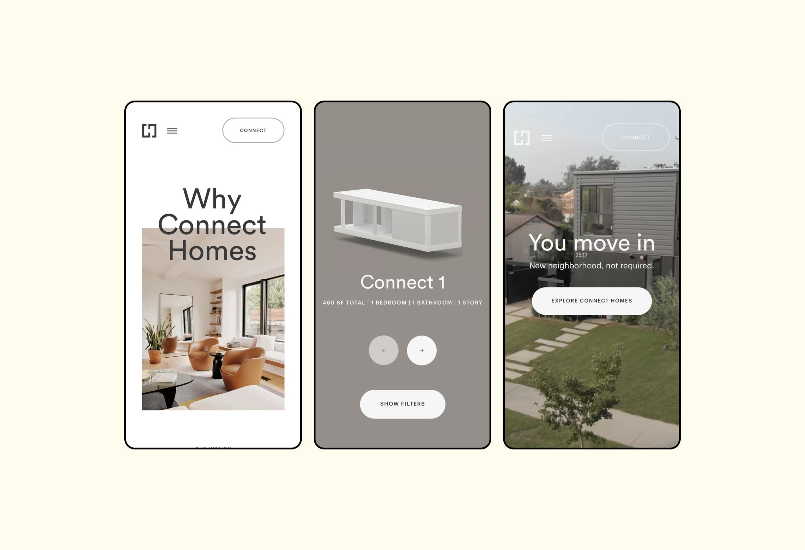 Connect Homes specializes in urban smart homes that blend aspiration with affordability. We partnered with Connect Homes to position them as leaders in the prefab industry, focusing on a brand identity that goes beyond architecture to emphasize connection and modern living.