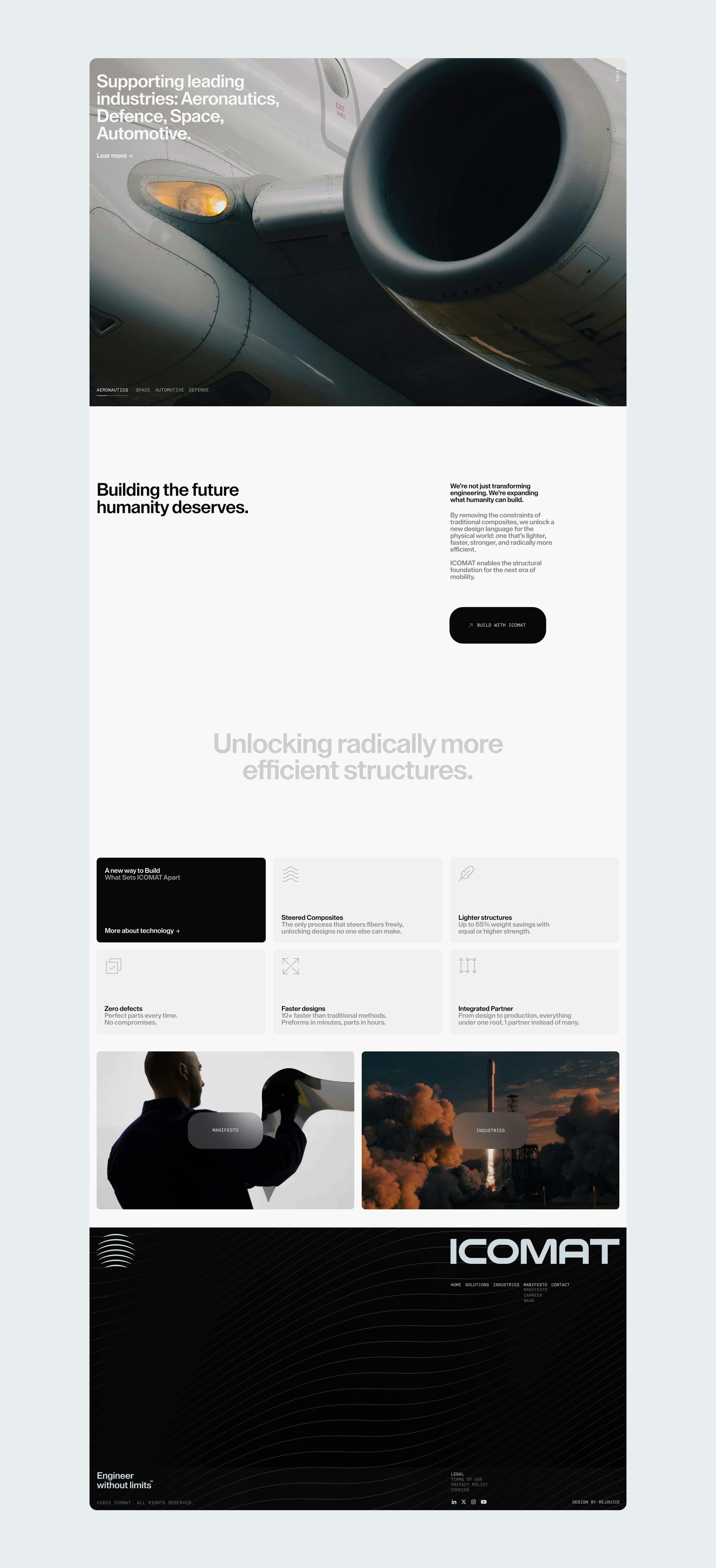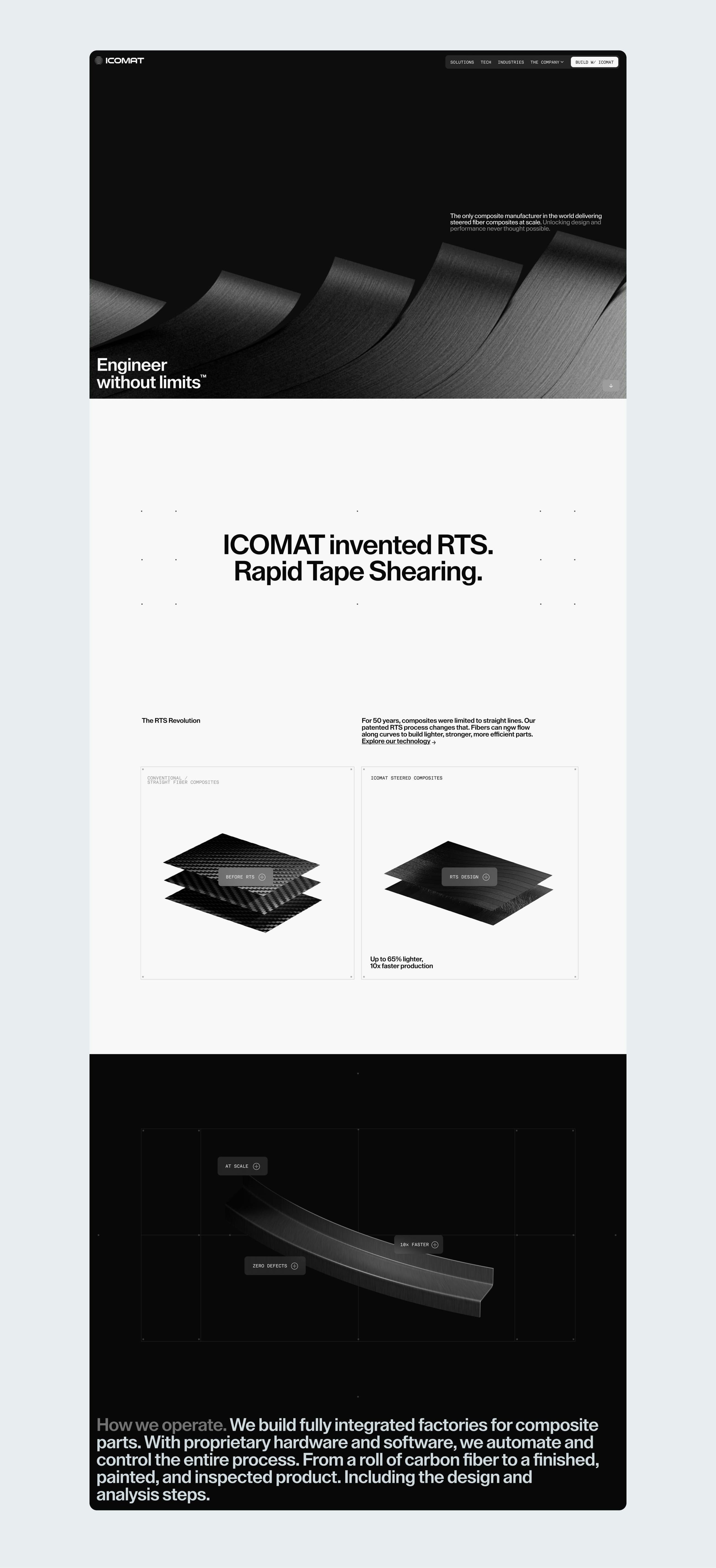 We partnered with their founders, investors, and team to transform their breakthrough Rapid Tow Shearing (RTS) process into a clear, visual story. The result is a brand, messaging, and digital experience that turns complex engineering into something instantly understood, letting the technology speak for itself.