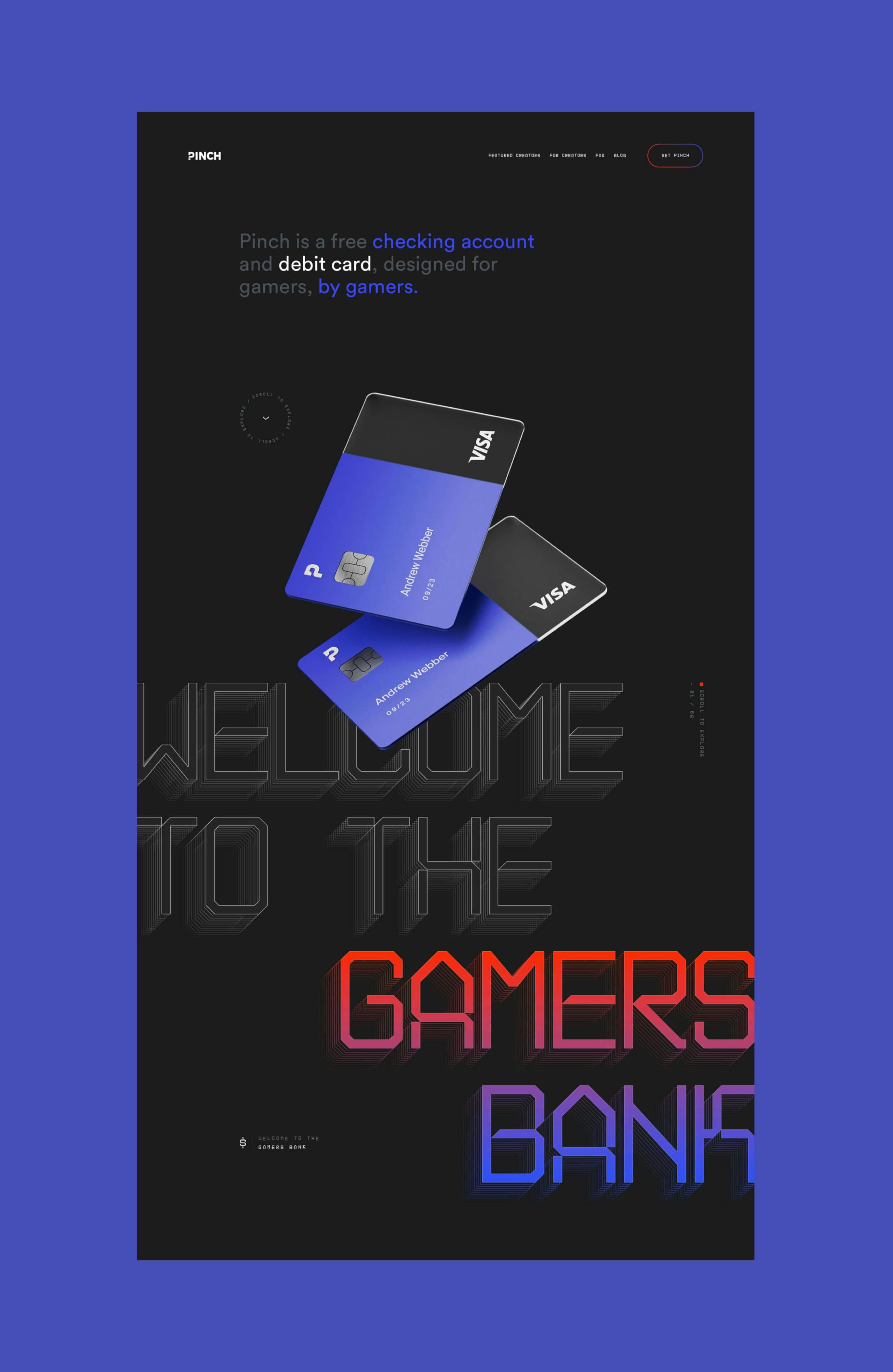 Pinch Bank is an early-stage Neobank designed for gamers, offering tailored products and rewards. We partnered with Pinch to build a brand and app experience that breaks away from traditional banking's impersonal and dull image.