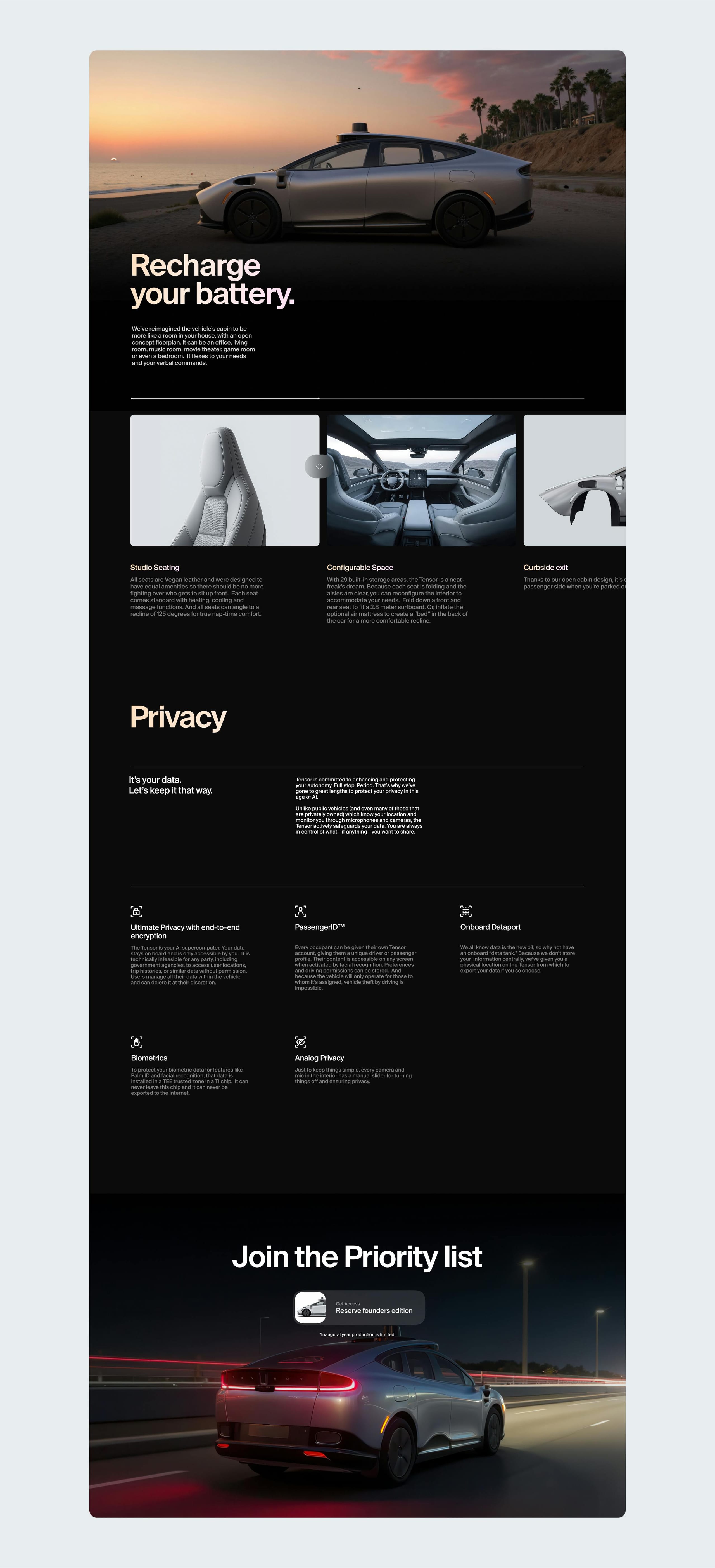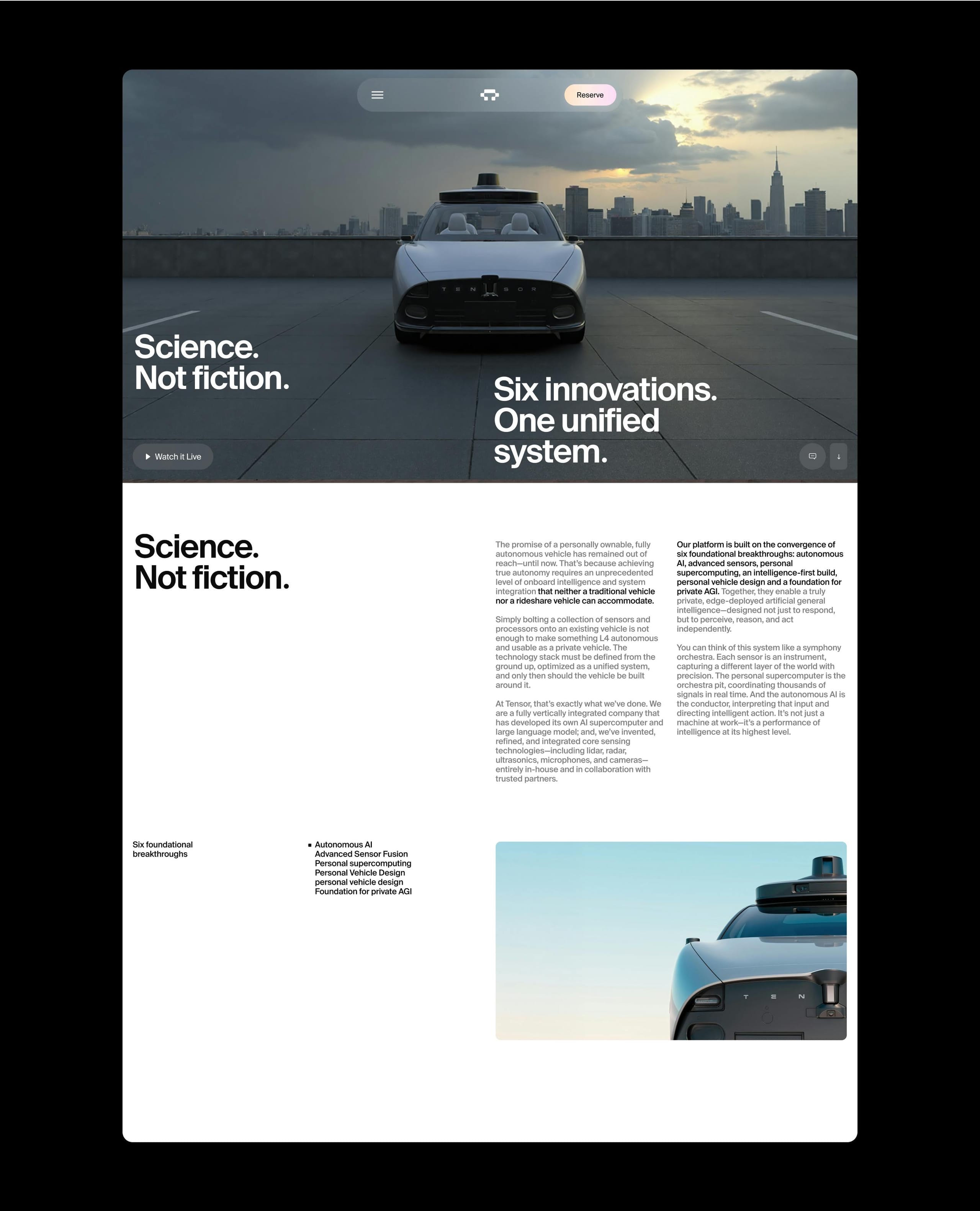 We defined their brand and launch strategy, crafted their identity, worked on naming the company and their first product, produced all CGI for the launch, designed their digital experience, and orchestrated a debut that positioned Tensor as a bold new force in the automotive and AI industry. Similarly to what we did for Rivian a few years back.